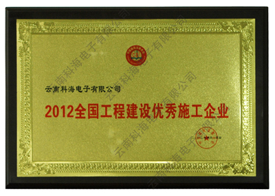 在2012(第3屆)置業中國/工程建設國際峰會上,中國建筑業聯合會為表彰先鋒、樹立榜樣,充分發揮優秀施工企業在我國建設工程領域的導向作用,經施工企業層層選拔推薦,最后由中國建筑業聯合會評審委員會審定:云南科海電子有限公司獲選“2012全國工程建設優秀施工企業”。