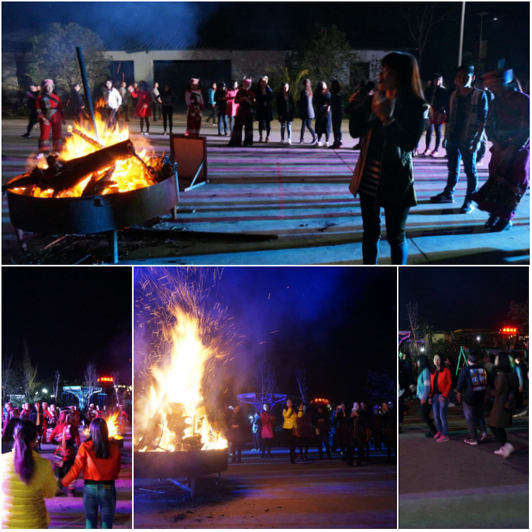 明月初上,湯副總點(diǎn)燃的篝火拉開(kāi)了篝火晚會(huì)的序幕,伴隨著歡快的音樂(lè),大家跟著彝族阿詩(shī)瑪們跳起了歡樂(lè)的民族舞蹈。伴著篝火熊熊燃燒,大伙盡情展示著科海巾幗的風(fēng)采,久久地回蕩在每個(gè)參與者的夢(mèng)境中……