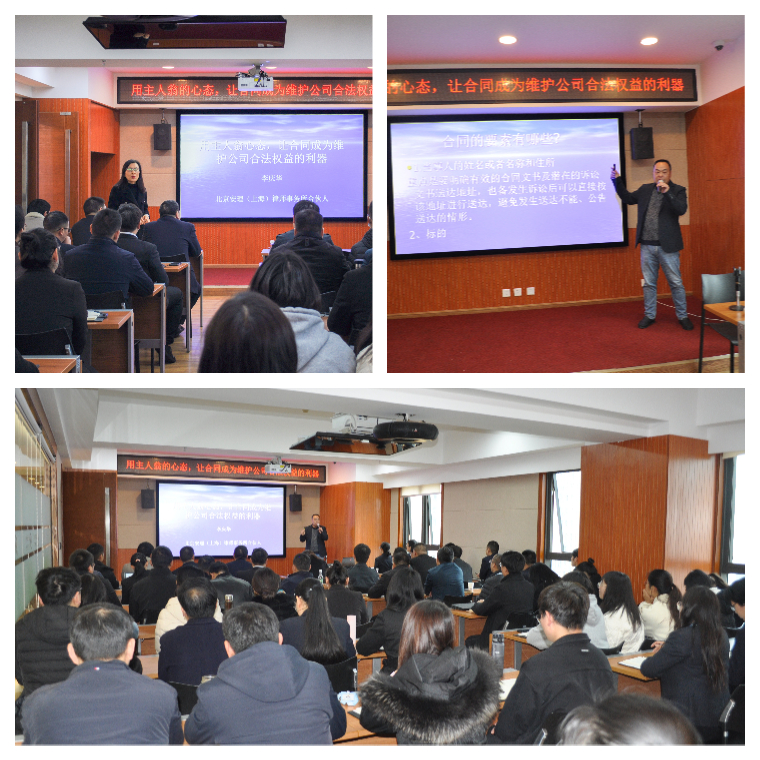 為增強全體員工的法律基礎知識,提升法律素養(yǎng),規(guī)避合同全生命周期管理過程中的法律風險,保證公司業(yè)務經(jīng)營的可持續(xù)發(fā)展,3月3日上午,公司特邀李慶華律師開展了以“用主人翁的心態(tài),讓合同成為維護公司合法權益的利器”為主題的法律基礎知識專題培訓。