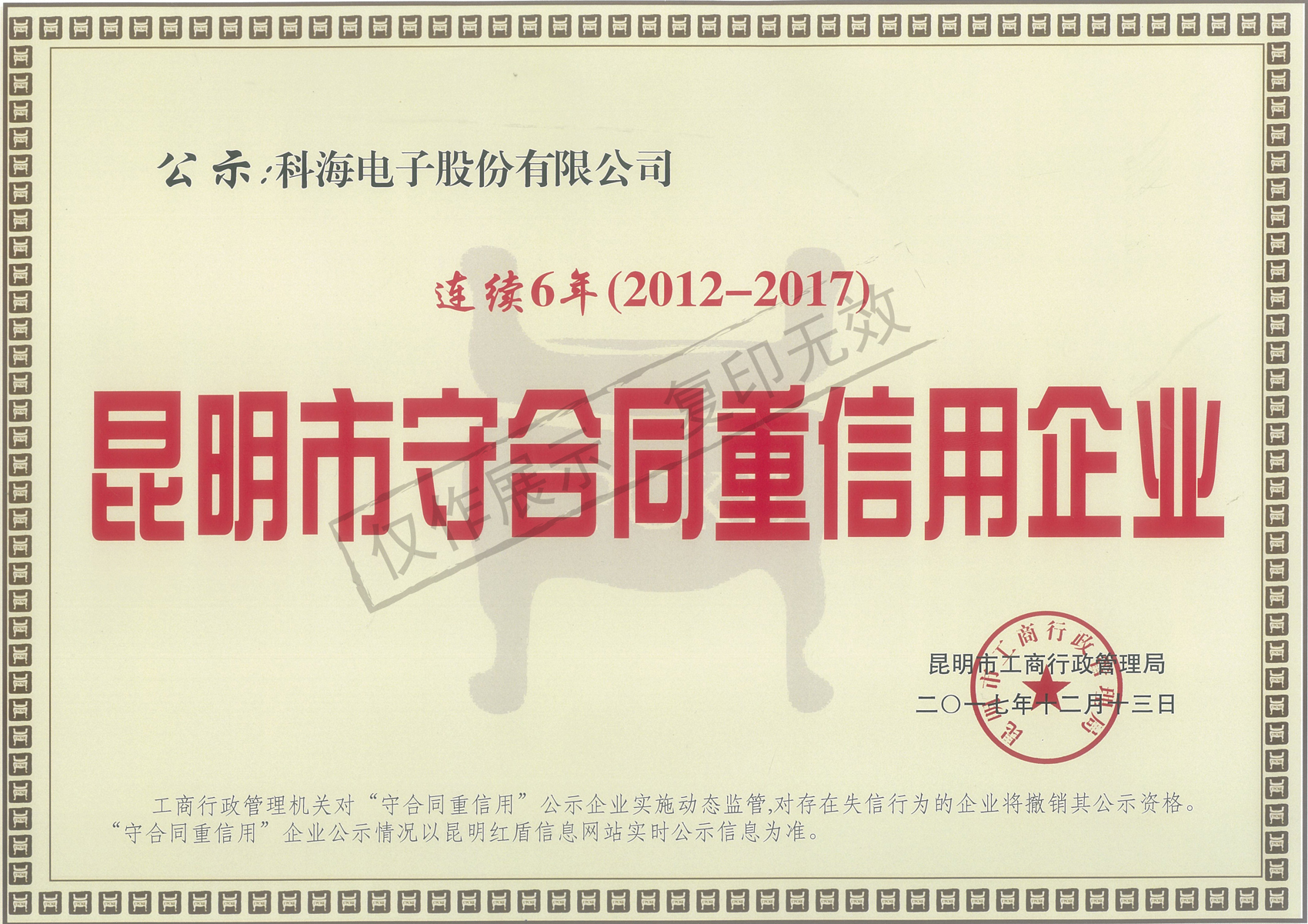 昆明市連續6年守合同重信用企業