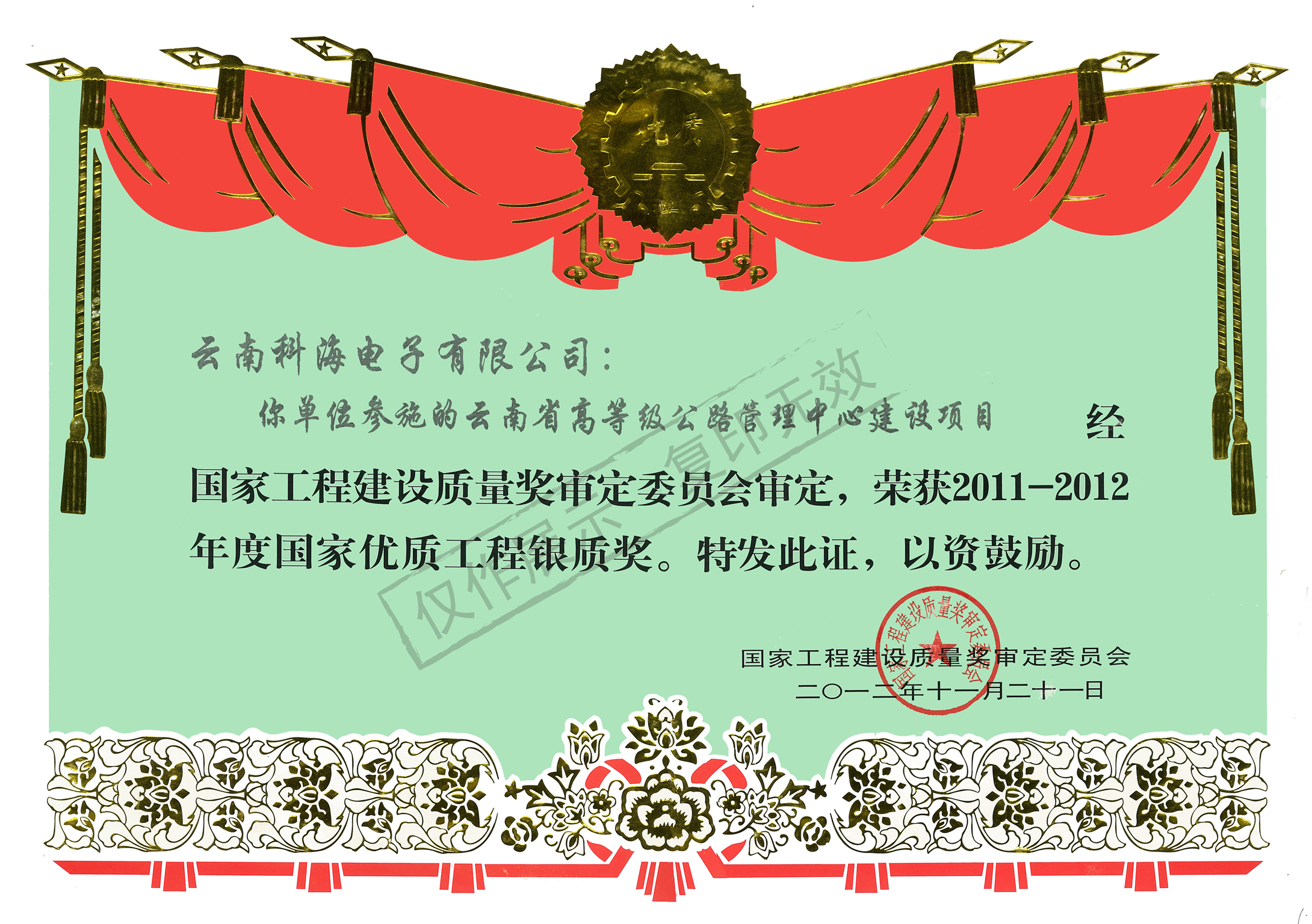 高等級(jí)高速公路管理中心國(guó)家優(yōu)質(zhì)工程銀獎(jiǎng)