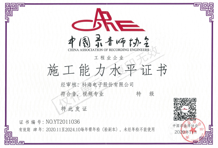 音、視頻工程企業(yè)資質認證證書